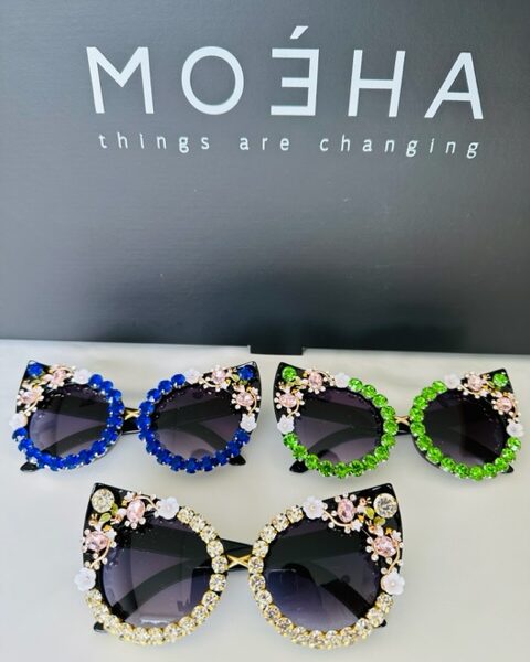 Γυαλιά ηλίου με λευκό σκελετό degrade φακό και διακόσμηση με στρασ περιμετρικά