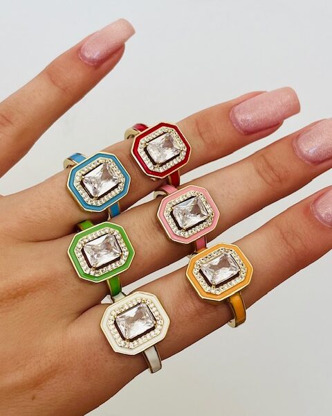 Δαχτυλίδι από χαλκό επιχρυσωμένο με ζιργκόν και σμάλτο