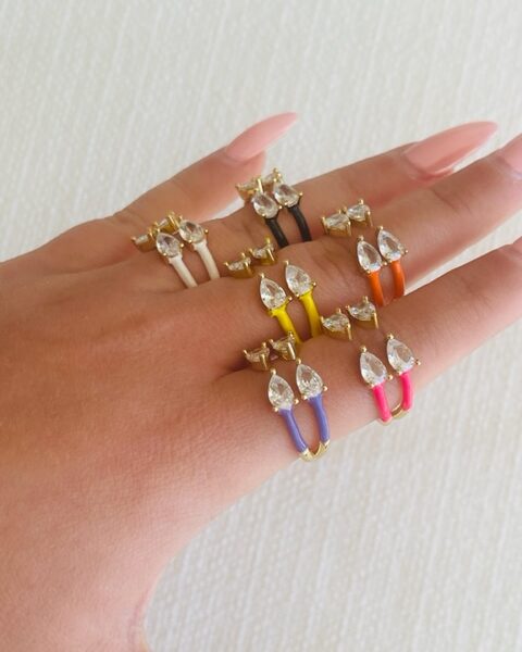 Δαχτυλίδι από ορείχαλκο  επιχρυσωμένο με ζιργκόν και σμάλτο σε διάφορα χρώματα