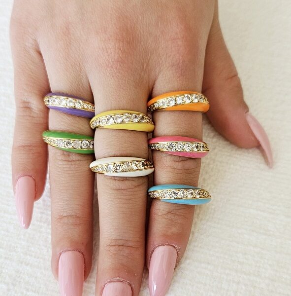 Δαχτυλίδι από ορείχαλκο επιχρυσωμένο με ζιργκόν και σμάλτο
