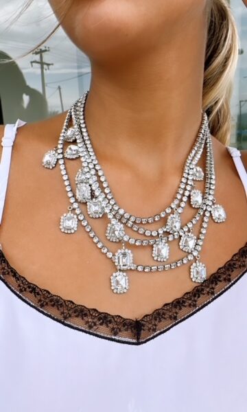 Κολιέ/τσόκερ από ορείχαλκο σε ασημί βάση με τρεις σειρές κρύσταλλα