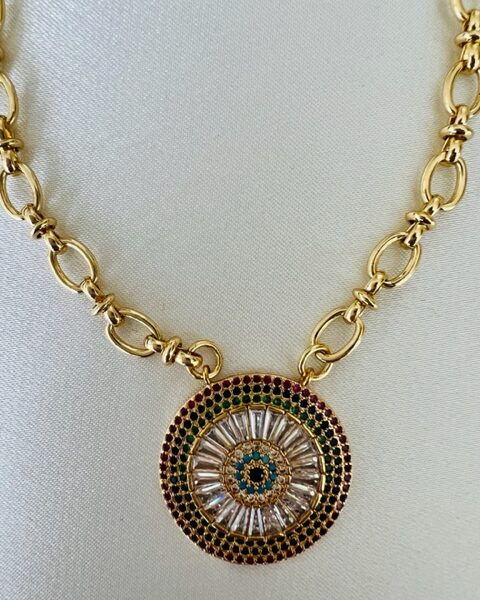 Κρεμαστό στοιχείο από χαλκό επιχρυσωμένο με ζιργκόν. Διάμετρος 2εκ.