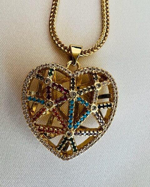 Κρεμαστό στοιχείο “καρδιά” ύψους 4cm από ασήμι 925, ζιργκόν και τουρμαλίνη