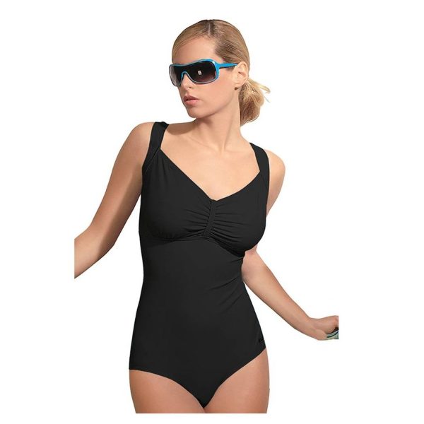 Γυναικείο Μαγιό Ολόσωμο. Ιδανικό για κυρίες με λίγα κιλάκια παραπάνω. Έχει μια μικρή ενίσχυση(λεπτό σφουγγαράκι) για να κρατάει το στήθος και για να μην “διαγράφει” από το μαγιό. Γεμάτο πίσω και κλείνει χαμηλά στον μηρό.