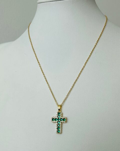 Σταυρός από επιχρυσωμένο ατσάλι με ζιργκόν και στρας