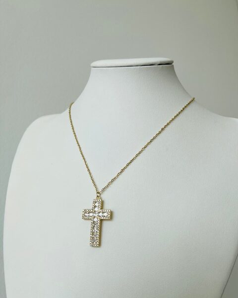 Σταυρός από επιχρυσωμένο ατσάλι με ζιργκόν και στρας