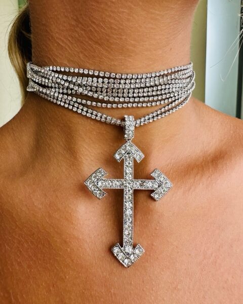 Σταυρός από επιπλατινωμένο ή επιχρυσωμένο ατσάλι με στρας