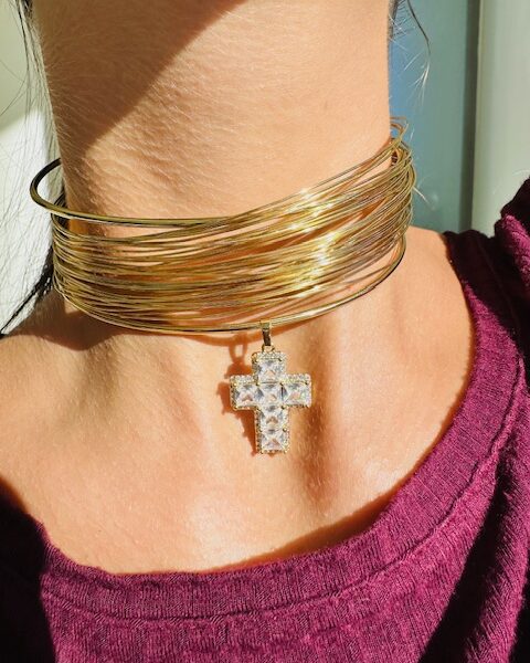 Σταυρός από ορείχαλκο επιχρυσωμένο με στρας