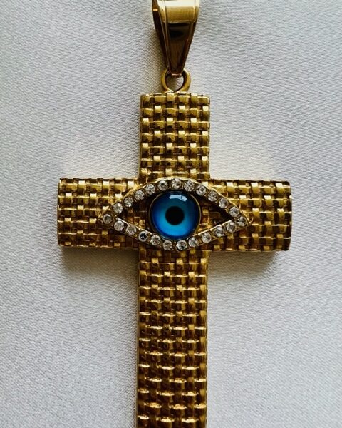 Σταυρός από ατσάλι επιχρυσωμένο με ζιργκόν