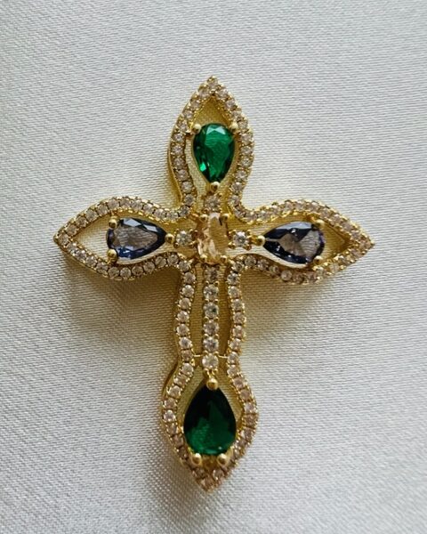 Σταυρός από χαλκό επιχρυσωμένο με ζιργκόν