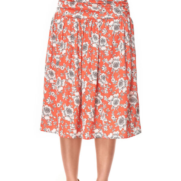 φούστα τυπωμένη με βολάν στο επάνω μέρος και φερμουάρ κρυφό στο πλάι.