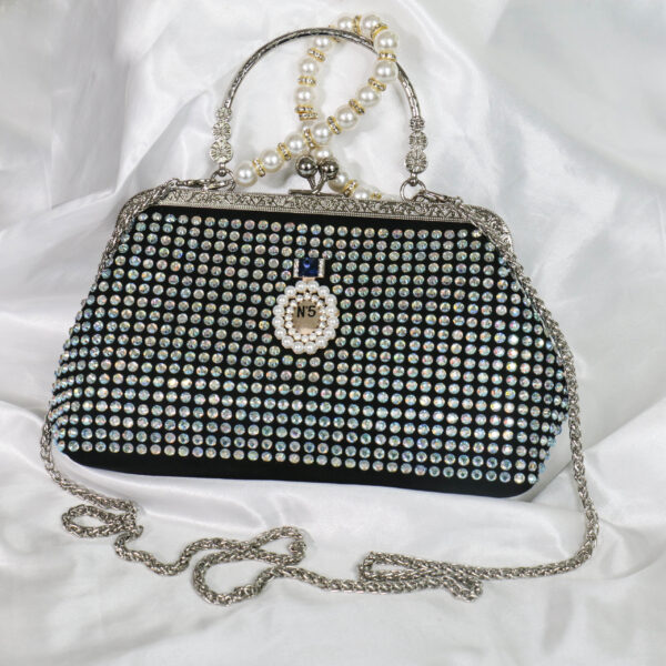 Τσάντα από τεχνητό δέρμα , με διακοσμητικά  στρας εμπρός.