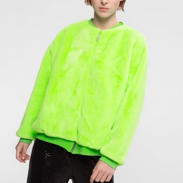 FAKE FUR BOMBER ΑΠΟ ΓΟΥΝΑ ΟΙΚΟΛΟΓΙΚΗ ΜΕ ΦΕΡΜΟΥΑΡ STRASS "GIRL" ΜΕ ΜΠΑΣΚΑ ΑΠΟ ΡΙΠ ΚΑΙ ΜΑΥΡΗ ΦΟΔΡΑ