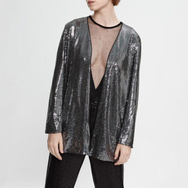 Zακέτα με allover print ασπρόμαυρη , κρουαζέ με ένα δεύτερο print με κρίκους στην πατιλέτα και την ζώνη για το απόλυτο print block